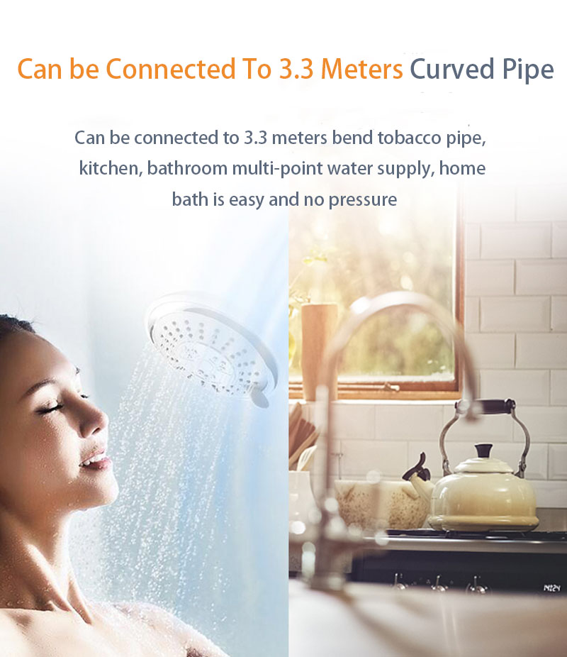 Can be connected to a three-meter three-meter elbow pipe, the kitchen and bathroom have multiple points of water supply at the same time, and the family bath is easy and stress-free